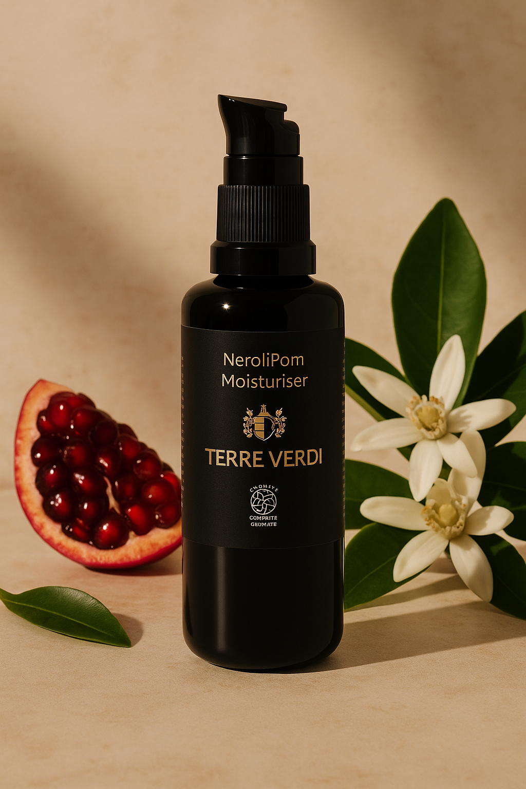 NeroliPom is the first water-based face moisturiser made in the UK to gain COSMOS Organic certification by the Soil Association. It contains Terre Verdi’s unique blend of anti-oxidising and hydrating organic Pomegranate Oil, coupled with uplifting Neroli Oil, gentle organic Camellia Oil and soothing organic Aloe Vera.